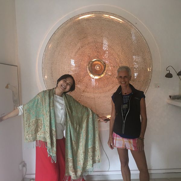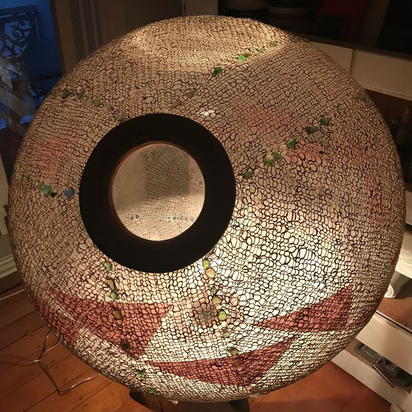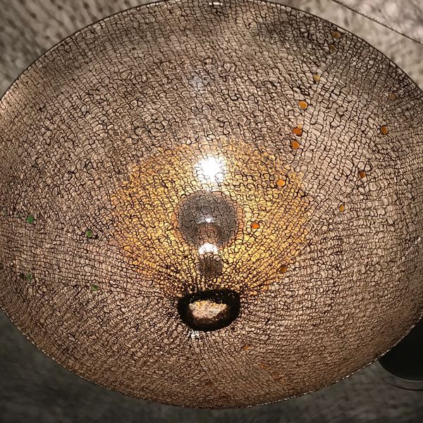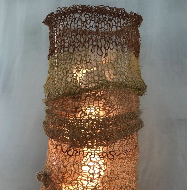The impurities in the material make it fragile in places and thick and knobbly in others. Gorgeous! It took some effort for me to change the neat way of knitting I was taught by my grandmother, into the uneven look of my ‘fishnet-lights‘ that suits the material”
